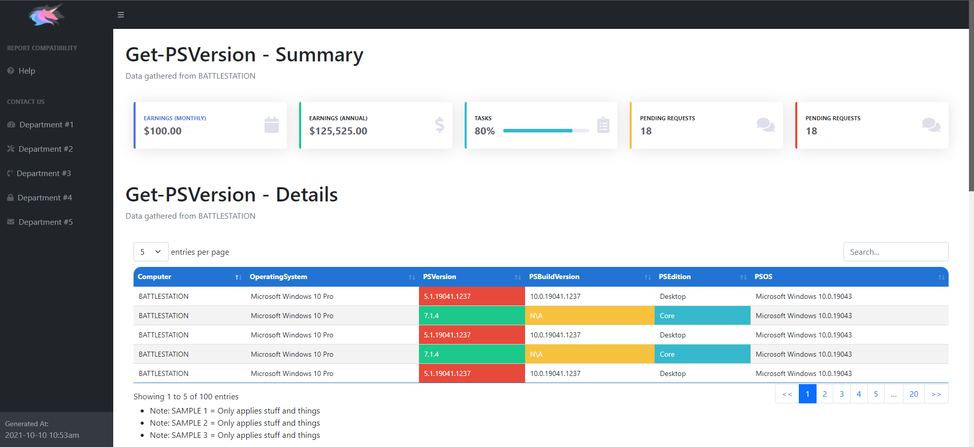 ConvertTo-Html is a cool function built directly into Powershell that allows you to generate simple HTML documents. The keyword there being “Simple” as the default output is a little too plain for my liking. I have always wanted to try and make more modern HTML reports so that I could show various data without it being overwhelming while at the same time highlighting points of interest to bring up in conversations.